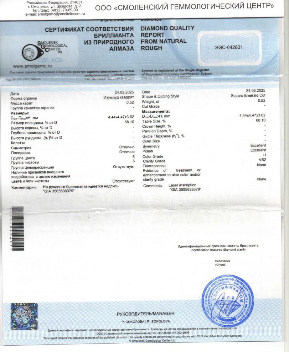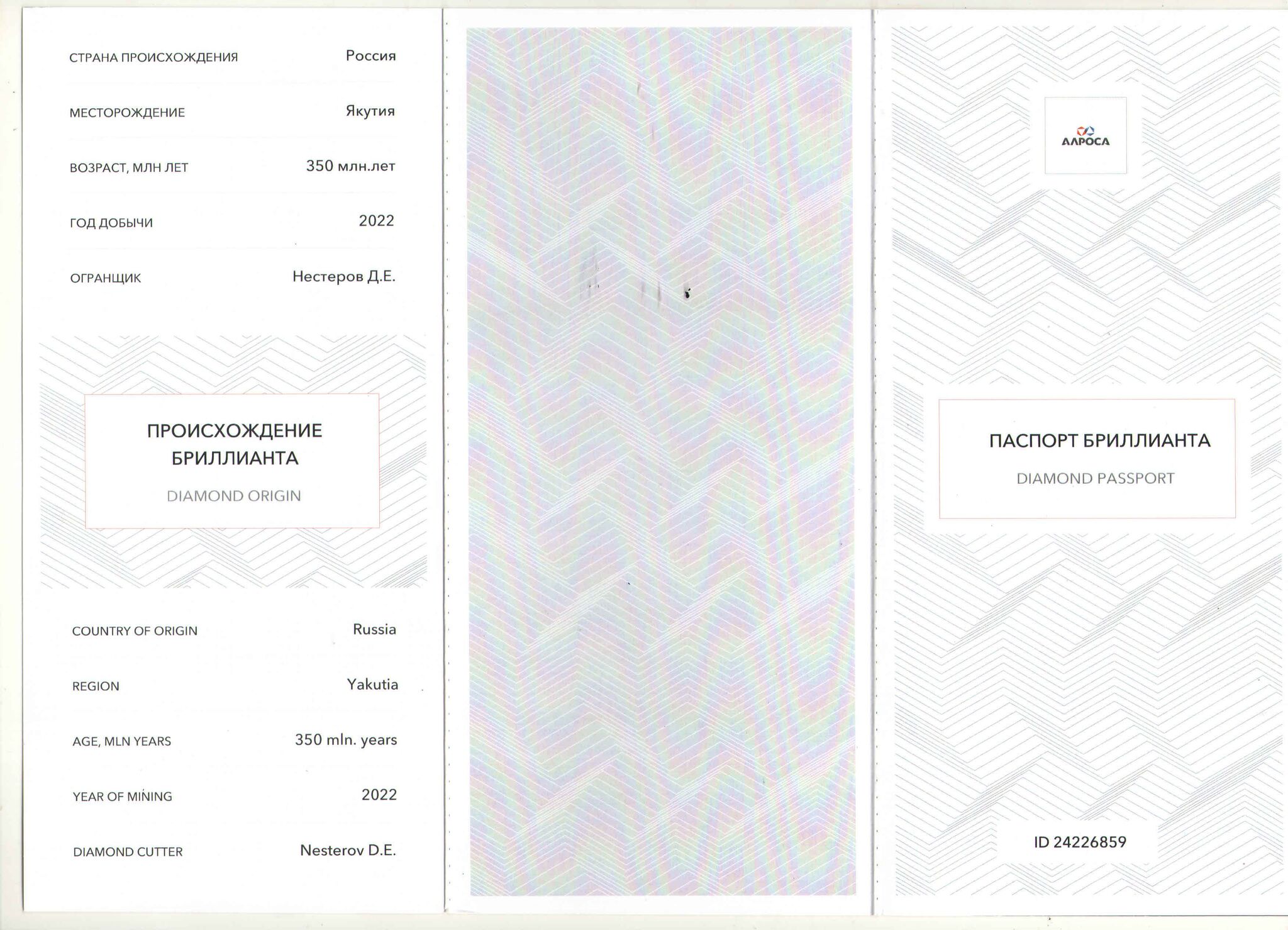 Бриллиант из Якутии - это настоящее сокровище, которое было добыто в одном из самых богатых регионов России. Он имеет паспорт Алроса, что подтверждает его подлинность и качество.