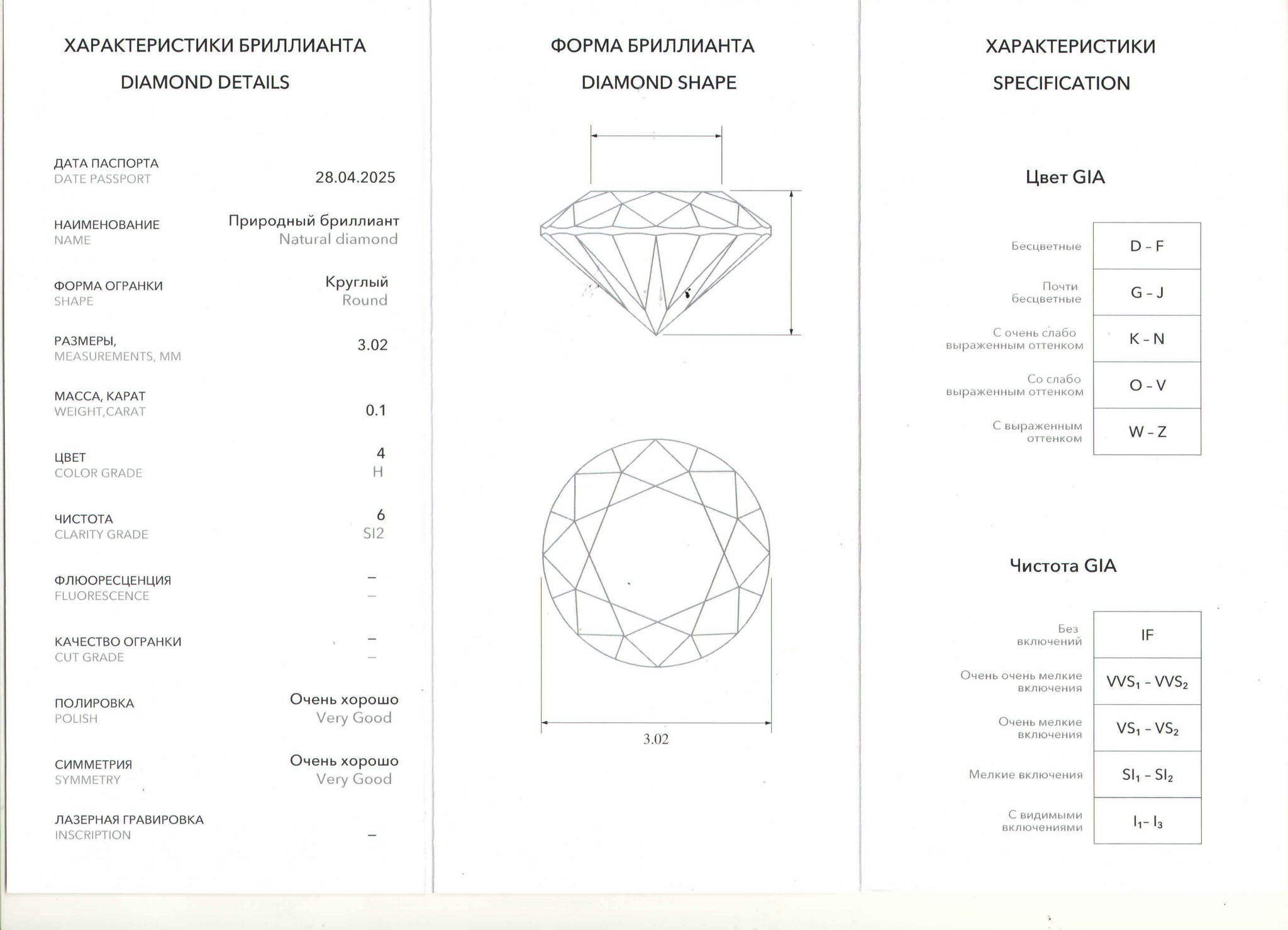 Представляем вашему вниманию уникальное ювелирное изделие - натуральный бриллиант круглой огранки весом 0,10 карата, возрастом от 100 млн.лет месторождением из Якутии! Этот драгоценный камень является настоящим символом роскоши и элегантности, который будет радовать вас своей красотой и изяществом каждый день.
