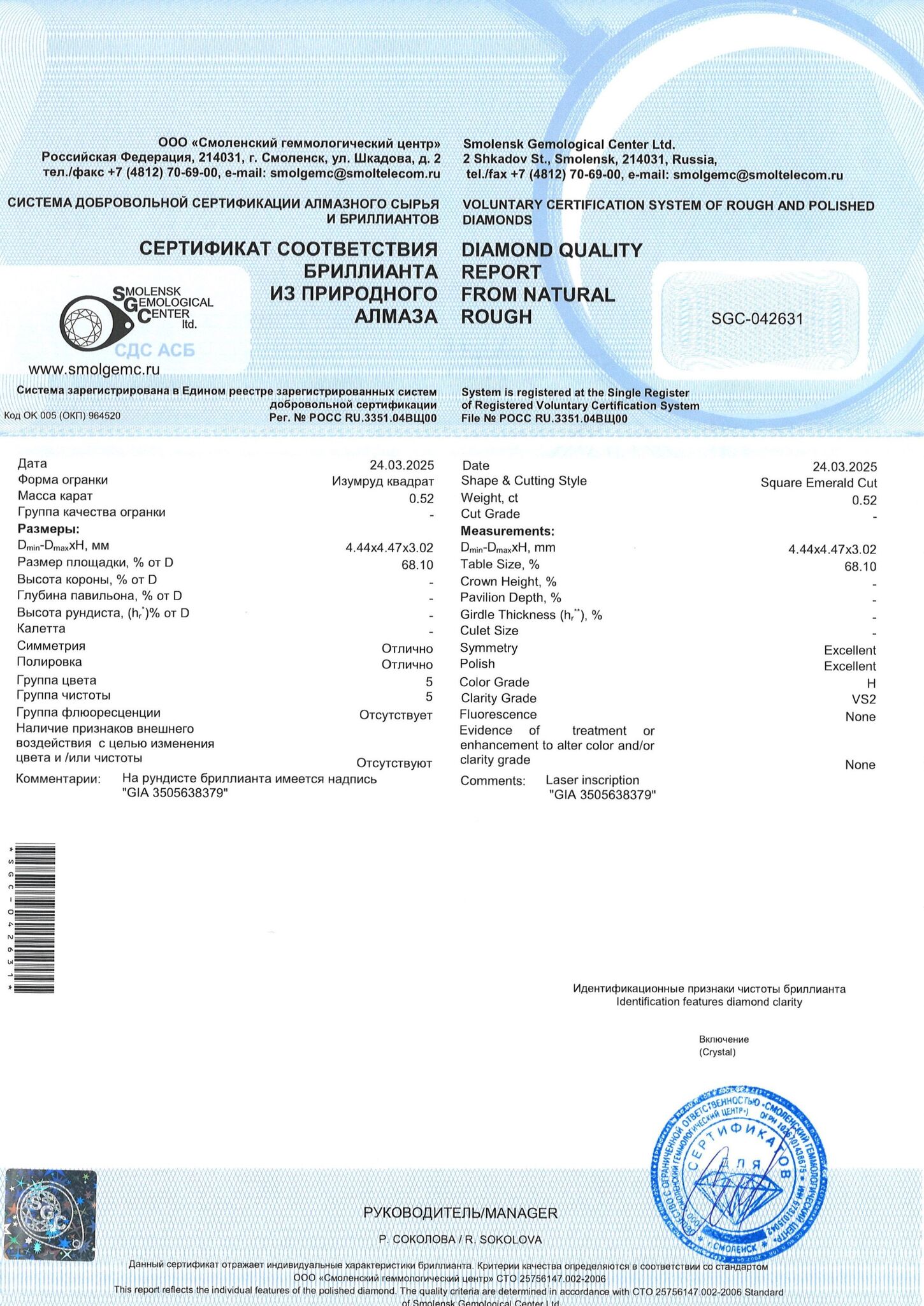 Каждый камень имеет свой сертификат соответствия и упакован в защитную упаковку - блистер. На сайте лаборатории Вы можете проверить подлинность любого драгоценного камня.